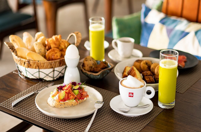 No Insólito Boutique Hotel & Spa o café da manhã está incluso em todas as diárias e pode ser servido na piscina, no salão do restaurante ou no conforto de sua suíte, mediante agendamento. No cardápio, toats avocado com salmão curado, ovos royale, tapiocas, omeletes e sanduíches. Pães, bolos, frutas frescas e sucos naturais também estão disponíveis para melhorar ainda mais a experiência da sua primeira refeição do dia. O café da manhã é servido de 8h às 10h30 e é aberto ao público.